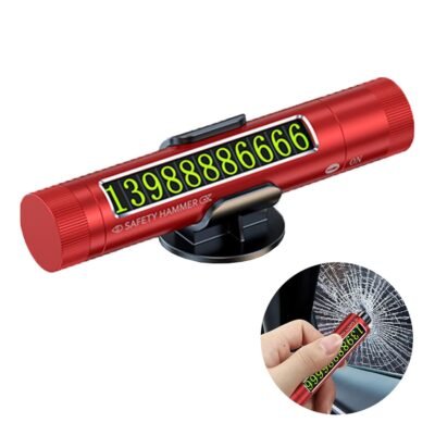 3 in 1 Car Glass Breaker, Car Hammer and Seat Belt Cutter, Temporary Parking Card Hidden, Glass Hammer | Hammer for Car Glass Breaking | Glass Breaker for Car Safety Emergency Escape Tool (Red)