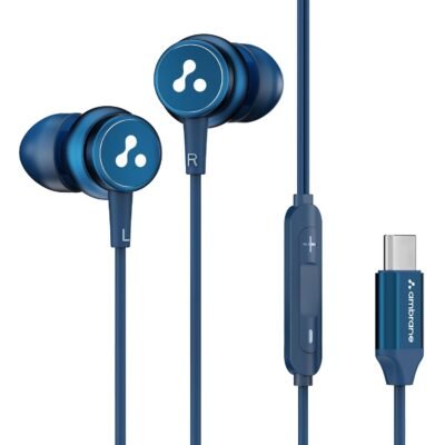 Ambrane Type C Wired Earphones with in-Line Mic for Clear Calling, 1.2M Cable, 10Mm Dynamic Drivers for Boostedbass, in Ear, Control Buttons for iPhone 15, Samsung & Type C Devices (Stringz 04, Blue)