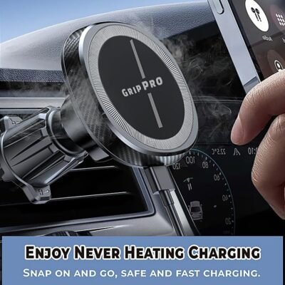GripPro for Magsafe Car Mount Wireless Charger 15W Car Charger for iPhone Magnetic Car Phone Holder Mount with Wireless Fast Charging Compatible for iPhone 14 13 12 with Cooling Fan