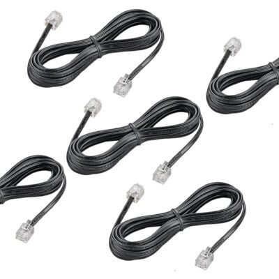 TAAPSEE Telephone Line Cord Rj11 Plug to RJ11 Plug 6p2c, Black (1.5 METER, 5 PACK)