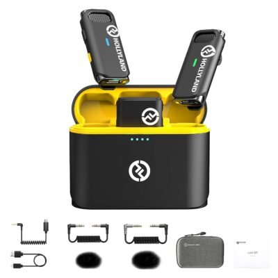 HollyView Lark M1 Wireless Mic Iphone Android Smartphone External Microphone DSLR Camera Mic With Noise Cancellation 200 M Transmission 8H Battery Life Dual Mic (2TX+1RX)
