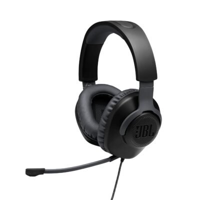 JBL Quantum 100 Wired Over Ear Gaming Headphones with Mic, 40mm Realistic Dynamic Drivers, Detachable Boom Mic, 1kHz Sensitivity, Memory Foam Cushioning, PC/Mobile/PS/Xbox/Nintendo/VR Compatible-Black