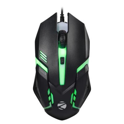 ZEBRONICS Uzi High Precision Wired Gaming Mouse with 4 Buttons, Rainbow LED Lights, DPI Switch with 800/1200/1600/2400 DPI, Plug & Play, 3 Million clicks, Lightweight Mouse