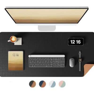 Bellblock Large Extended Desk Mat/Mouse Pad/Gaming Mouse Pad | Vegan PU Leather | Anti-Skid, Non-Skid, Reversible Splash-Proof | Black & Tan | 90cm x 45cm (Pack of 1)