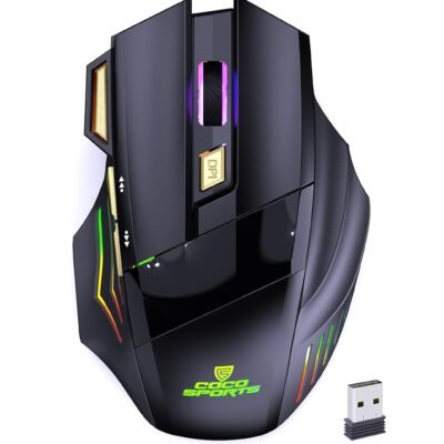 coconut WM22 Gold Wireless Gaming Mouse, 500 mAh Rechargeable Battery with 7 Color RGB LED Lighting,7 Buttons with Fire Key, Adjustable DPI up to 3200 for PC/Laptop/Mac