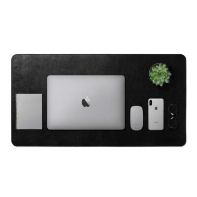 DailyObjects Large Premium Vegan Leather Desk Mat |Anti-Skid|Anti-Slip|85*45cm|Reversible Desk spread Turf Desk/Laptop Mat for Work from Home/Office/Gaming-Extended mouse pad & keyboard desk pad-Black