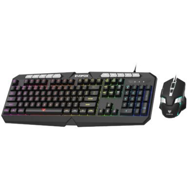 EvoFox Deathray v2 Gaming Keyboard and Mouse Combo | 6 Zone RGB Backlighting, 19 Anti Ghosting Keys, Membrane Keys, Ergonomic, Full-Size | 6 Buttons, 7 Color LED Lighting, Upto 3600DPI (Wired)