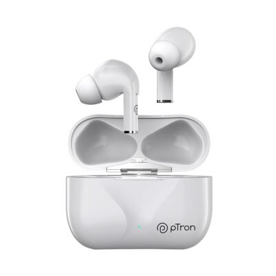 pTron Basspods P181 in-Ear TWS Earbuds with 32Hrs Total Playtime, Clear Calls, Bluetooth 5.1 Wireless Headphones, Stereo Audio, Touch Control, Type-C Fast Charging, IPX4 & Voice Assist (Pearl White)