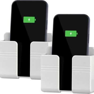 EDNITA Mobile Phone Charging Stand | Phone Stand with Self Adhesive Phone Holder for Shower, Multi-Functional Storage Holder, Bedside Fixed Rack, Bedroom, Office Accessories (Pack of-2 White)