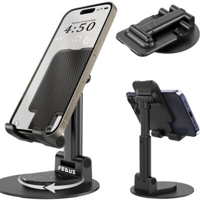 FEDUS Mobile Holder Stand, 360°Rotatable Phone Holder Tablet Stand Foldable & Height Adjustable for All Smartphones, Tablets, Kindle, iPad, Table, Bed, Desk, Home, office, Travel Video Recording Black