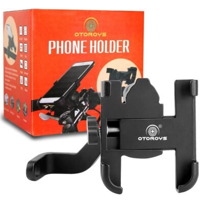 OTOROYS Universal Handlebar Bike Mount Holder Verson 2.0 Metal Body 360 Degree Rotating Mirror Cradle Stand for Bicycle, Motorcycle, Scooty Fits All Smartphones (Black)