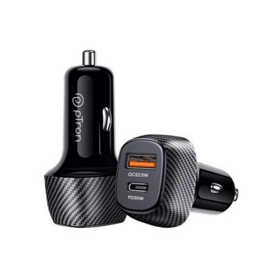 pTron Bullet Zip Mini 52.5W Car Charger with Dual Output, Super Fast Charging Compatible with Samsung, Xiaomi, Apple, MacBook, iPad, Oppo, Vivo, OnePlus, 30W Type-C/PD & 22.5W USB QC 3.0A (Black)
