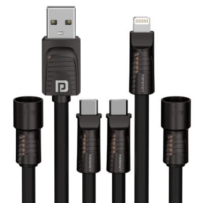 Portronics Konnect Tetra 60W 4 in 1 Multi Functional Fast Charging PD Cable with 1.4M Length, 480Mbps Data Sync, Compatible with All Type C Android Smartphone & Lightning Device(Black)