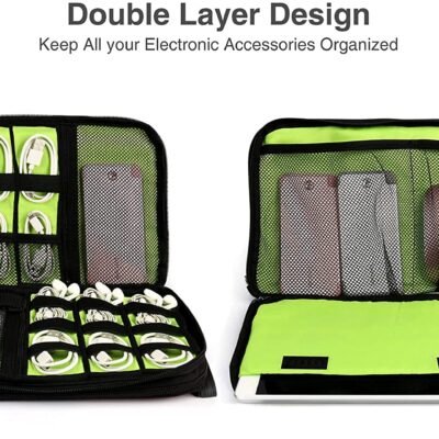 FYCAN Electronic Accessories Cable Organizer Double Layer Universal Carry Travel Tech Organiser Gadget Bag/Case Cables Plug, Power Bank, Phone, Hard Disk, Adapters, iPad Pro (Black-Orange)