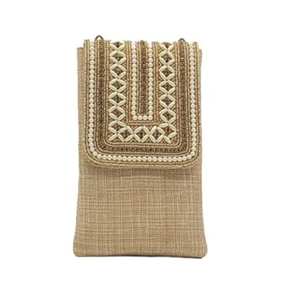 Bag Pepper Jute Fabric Clutch Mobile Pouch Waist Clip Ladies Purse Gift for Women. Stylish and Convenient Accessory for Everyday Use. (Dark Brown)