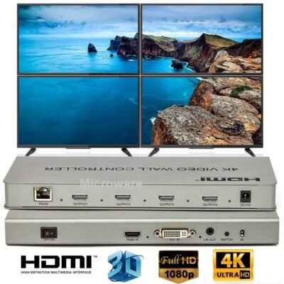 Microware 2×2 4K HDMI DVI Video Wall Controller Adapter LCD TV Wall Processor 4-HDMI+Audio Output Connector for HDTV Display