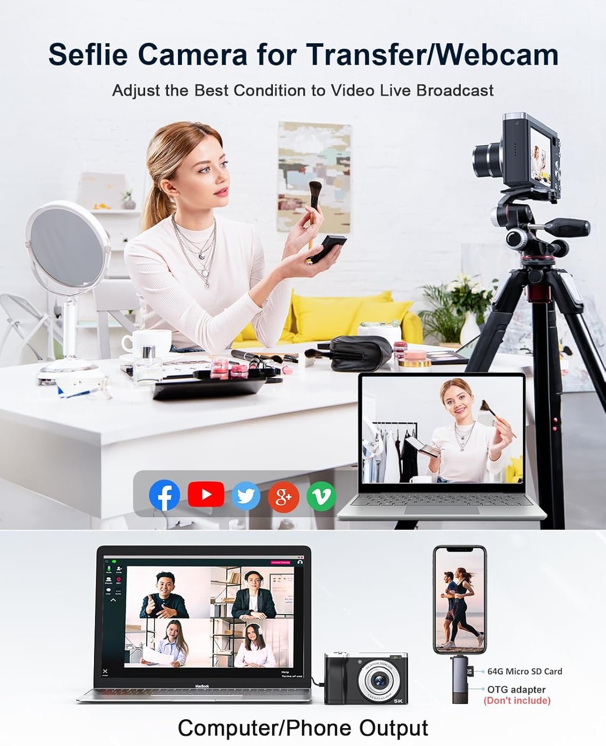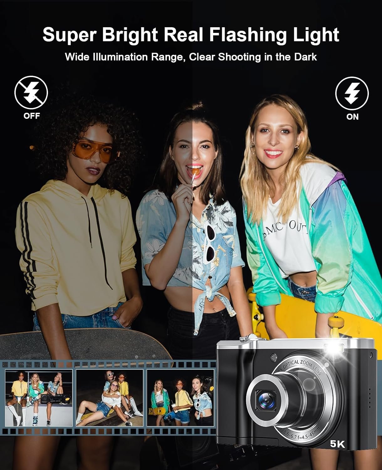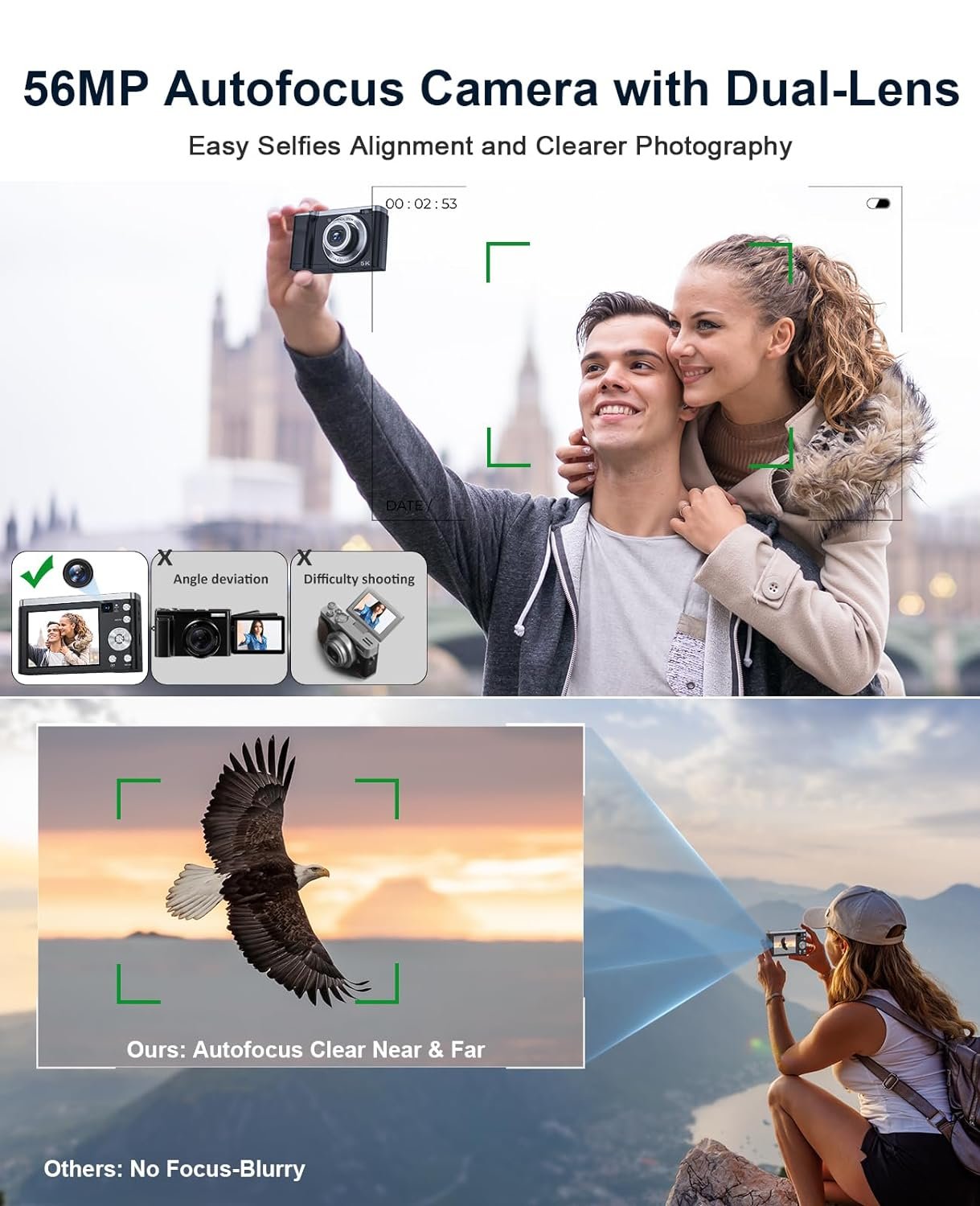 Special feature: 5K Digital Camera with 64G Micro Card 10X Optical Zoom, 56MP Touch Screen Selfie Camera with Front and Rear Lens, Vlogging Cameras for Photography and Video