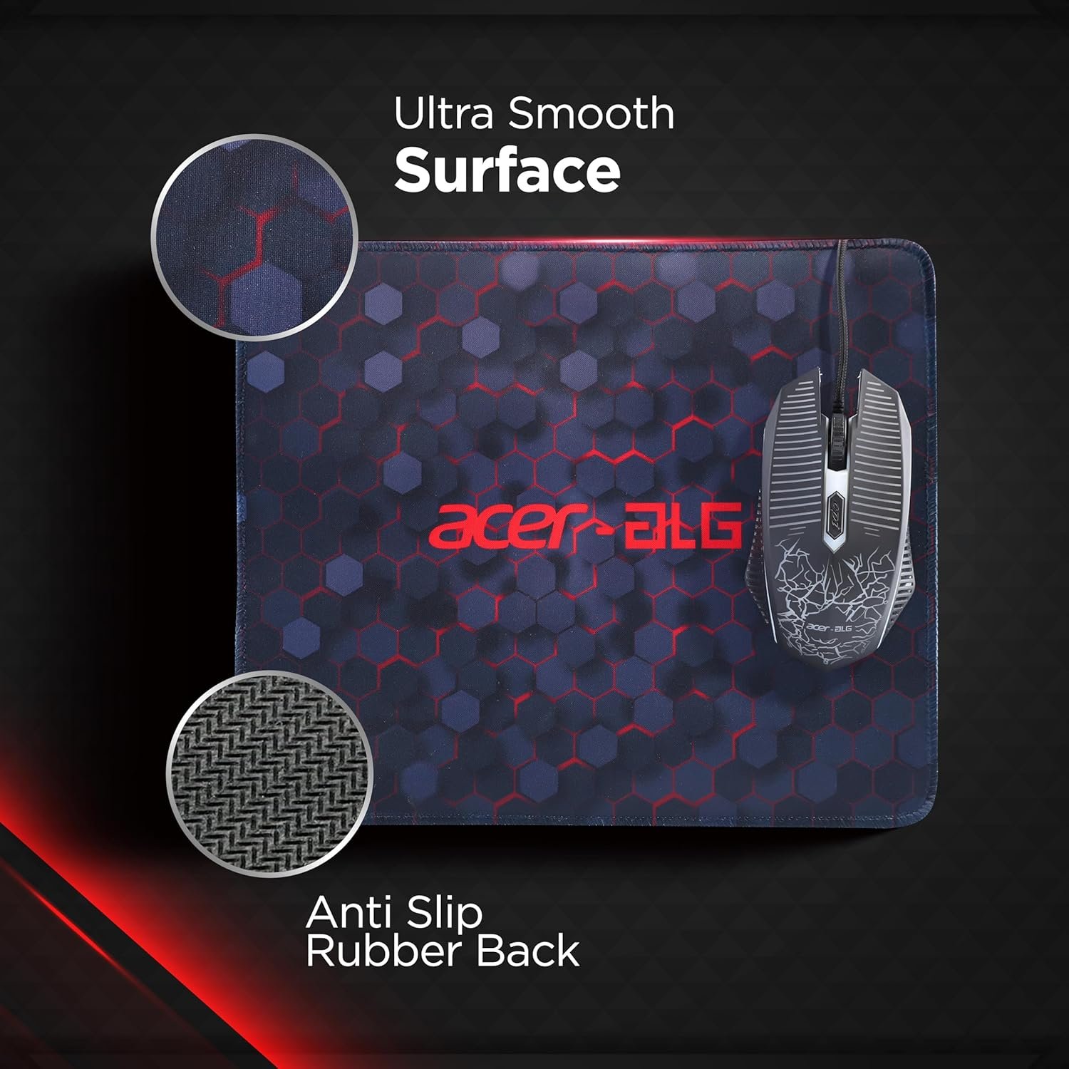 In addition to its precision-enhancing surface, the mousepad features a non-slip rubber base that ensures stability, even during the most intense and fast-paced gaming sessions. This base prevents the pad from shifting or sliding around, providing a firm, secure foundation for your mouse, so you can focus entirely on your gameplay without distractions.