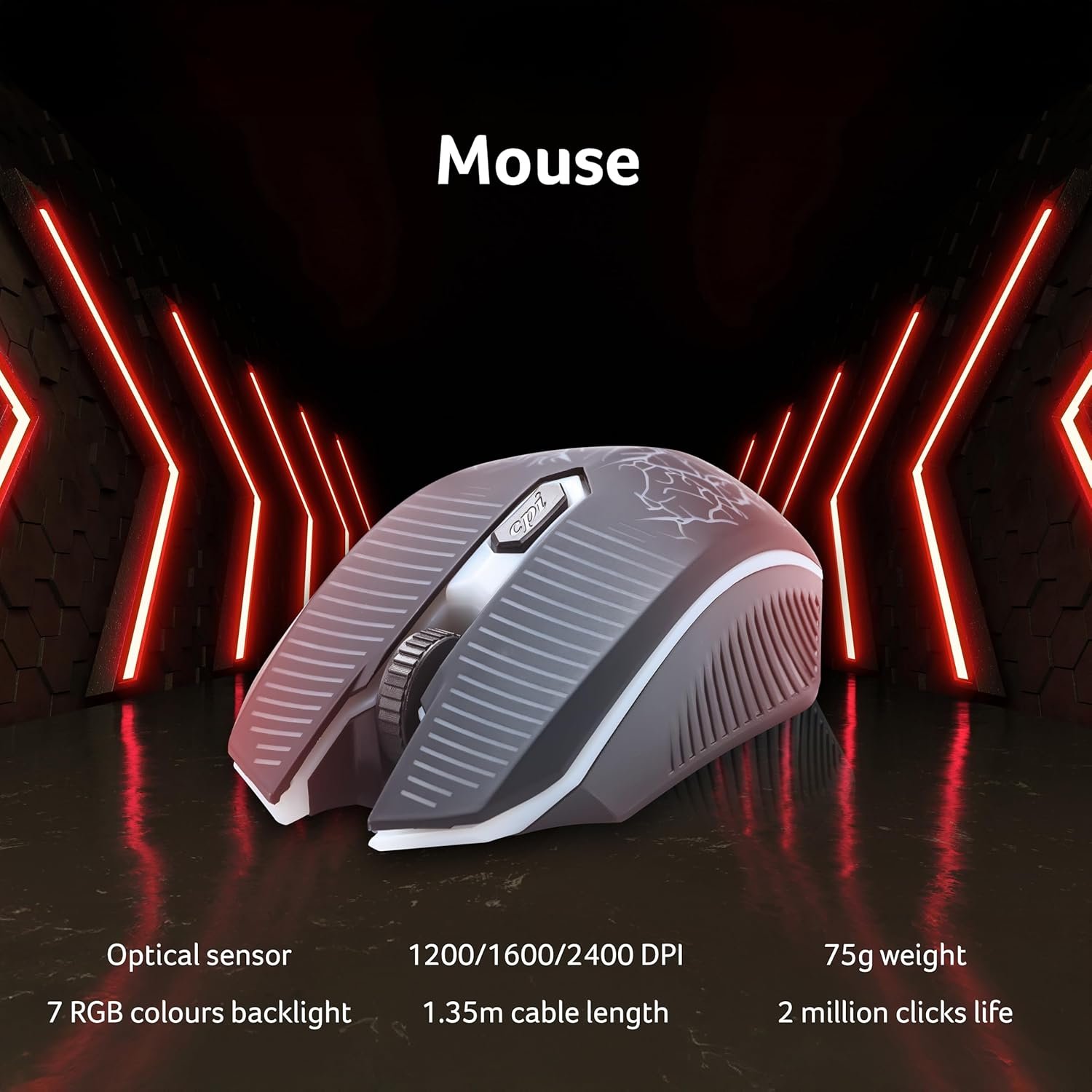 💥Gamers Delight : 104-Key 7-Color LED Backlit Keyboard (with LED On/Off Button, 580g, 1.5m cable) | RGB Mouse (1200/1600/2400 DPI, 1.35m cable) | Gaming Headphone (50mm Driver Unit, 120dB, 130mm Cable) | Mouse Pad (Fabric Weave, Anti-Slip Bottom)