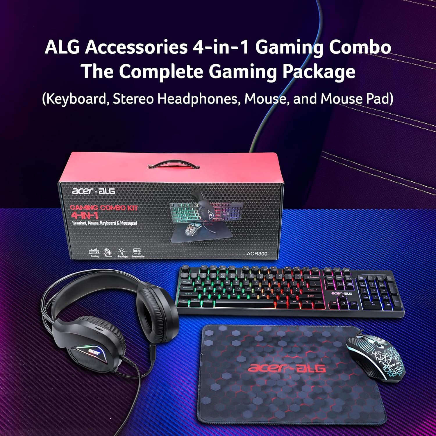 Each component of the combo is designed to work in perfect harmony, ensuring smooth and responsive control that gives you the competitive edge. Whether you’re navigating intense battles, executing precise movements, or immersing yourself in rich, dynamic soundscapes, the ALG 4-in-1 Gaming Combo ensures every action feels effortless and every detail comes to life.