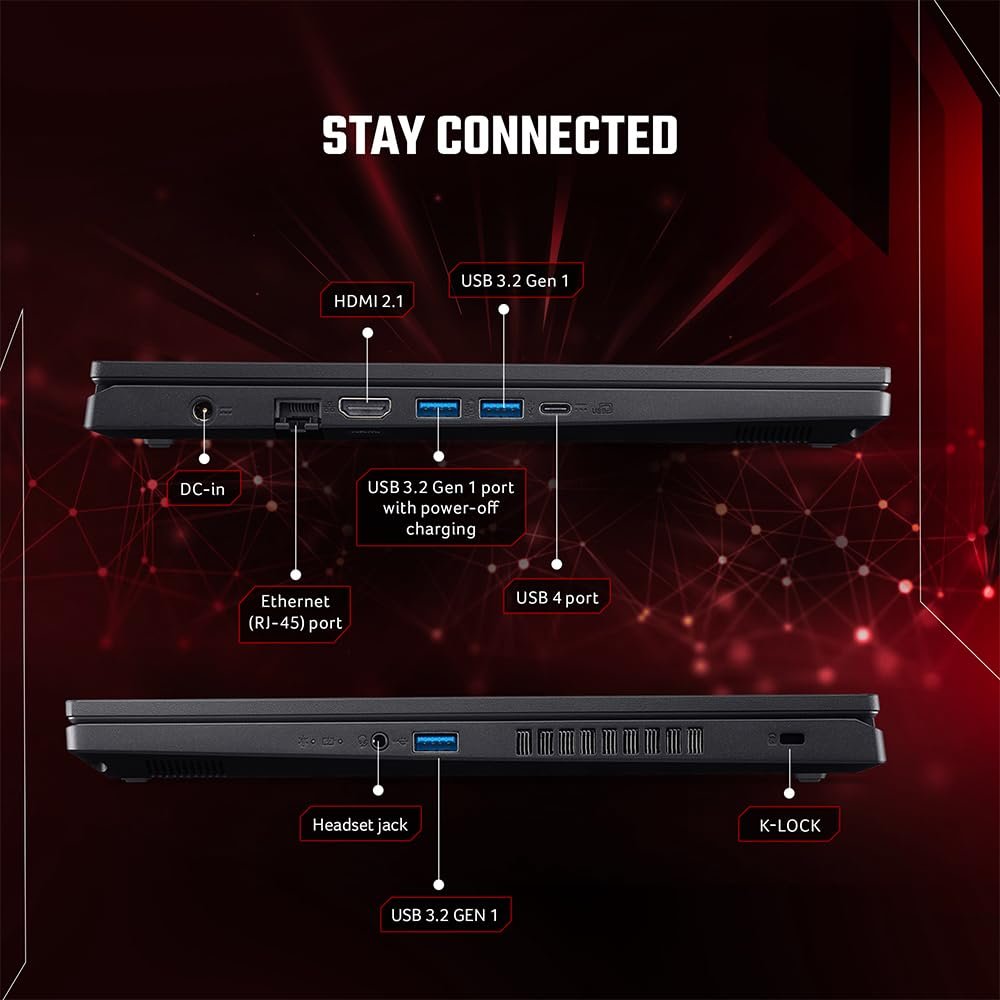 Display: 15.6″ display with IPS (In-Plane Switching) technology, Full HD 1920 x 1080, Acer ComfyView LED-backlit TFT LCD, 16:9 aspect ratio, supporting 144 Hz refresh rate