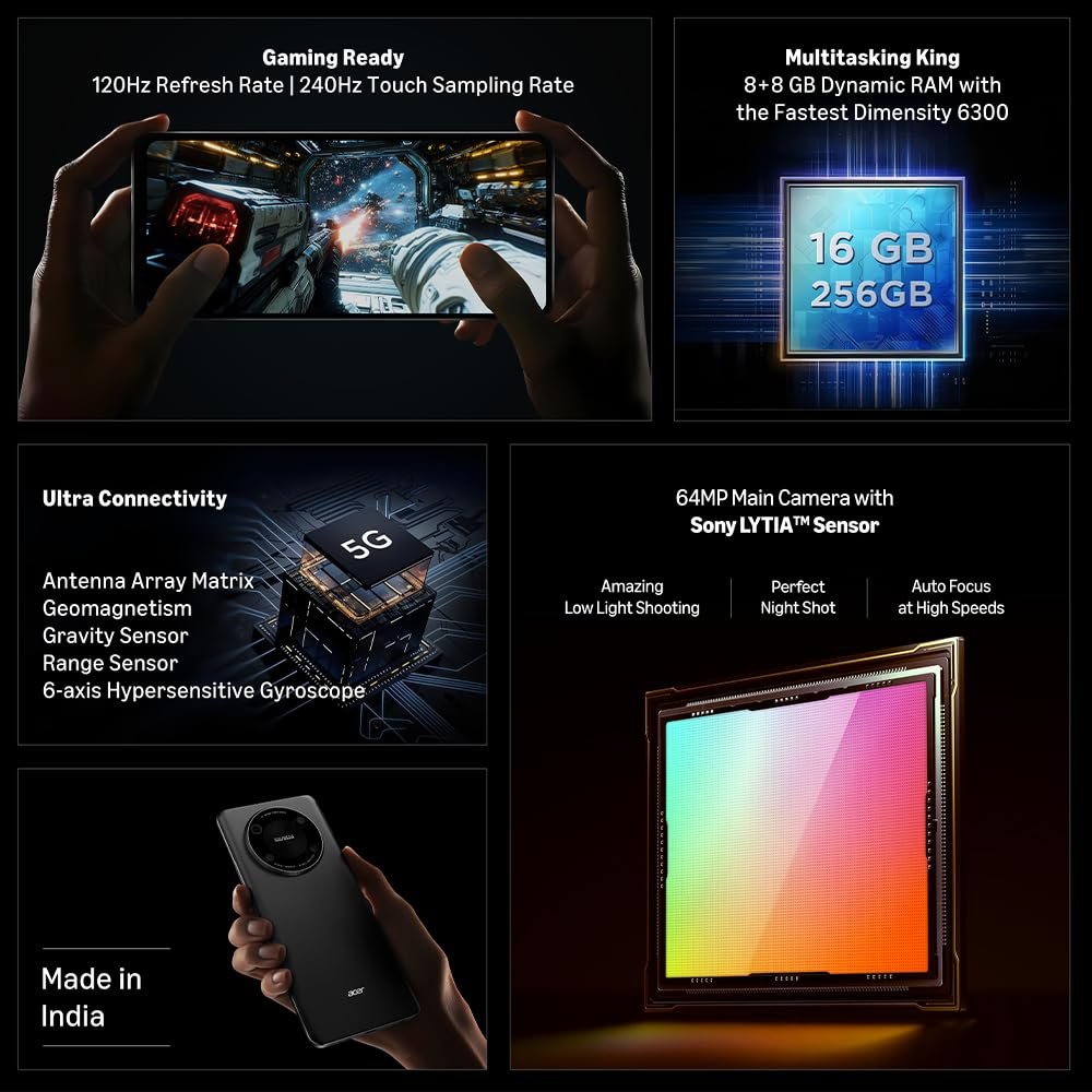 PERFORMANCE THAT POWERS THE FUTURE: Equipped with the MediaTek Dimensity 6300 5G chipset, the Acer Super ZX delivers effortless multitasking and blazing-fast speeds. With an AnTuTu score of 414 K+, and next-gen 5G capabilities, this device is built for high performance.