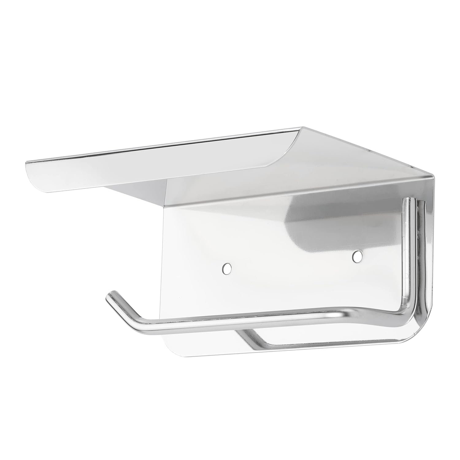 This toilet paper holder transforms the wasted space into a spacious storage area. the shelf is very convenient for placing lots of things. Simple and clean design paired with polished chrome, this shelf will also give a touch of elegance to your bathroom!