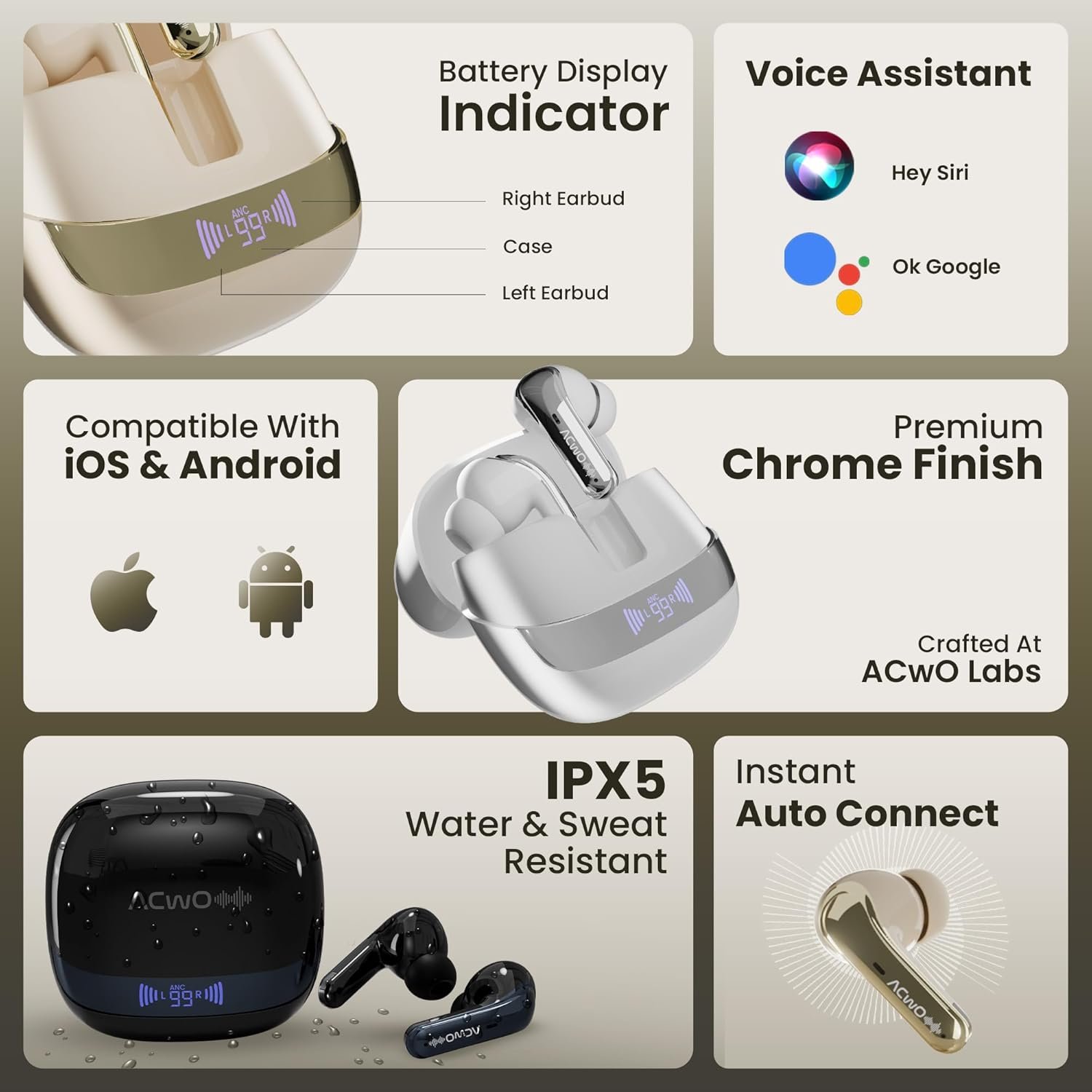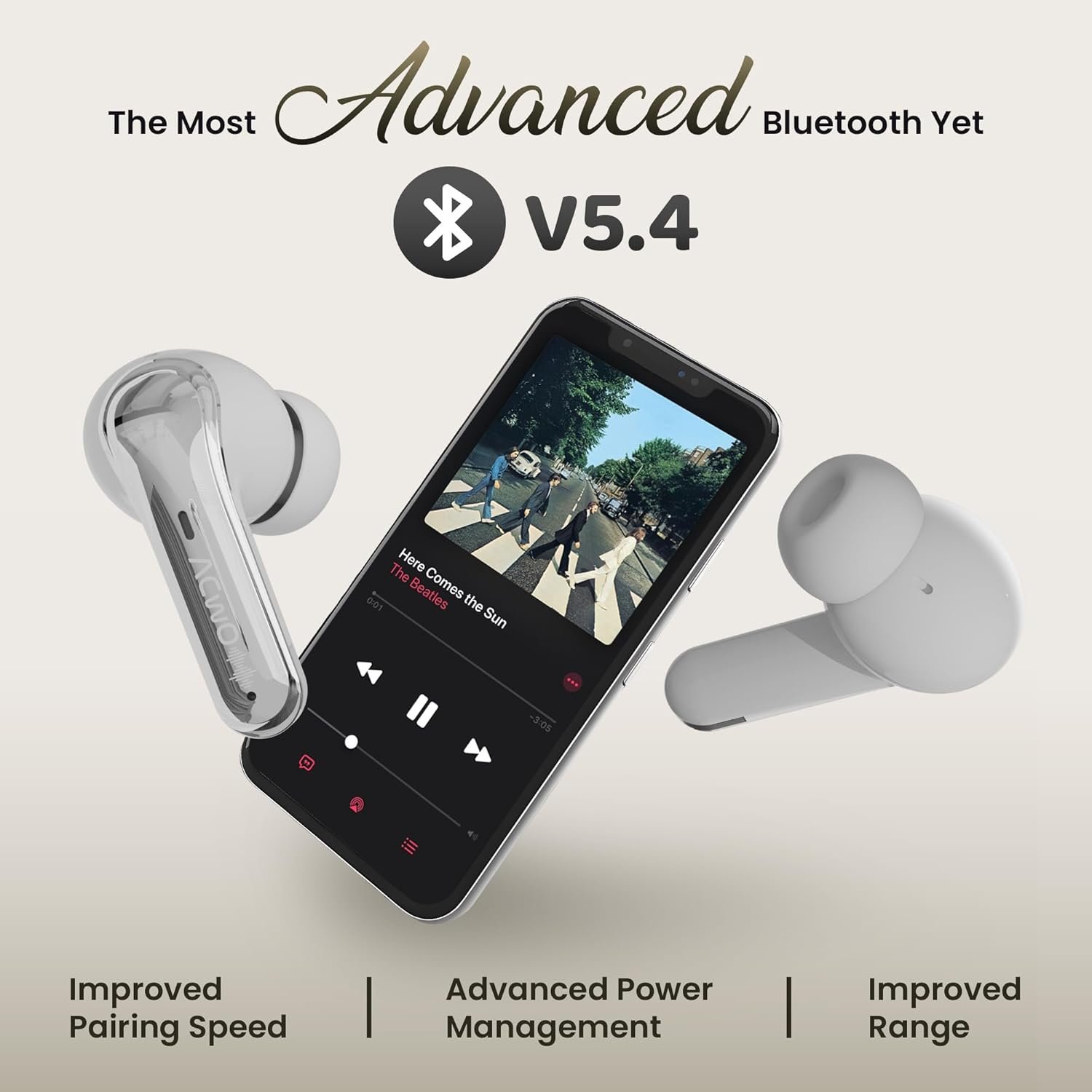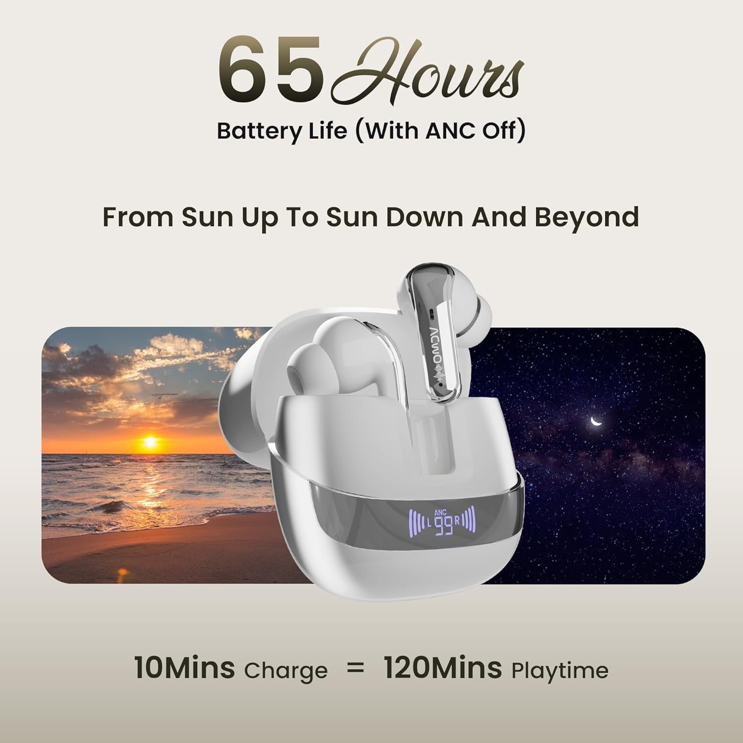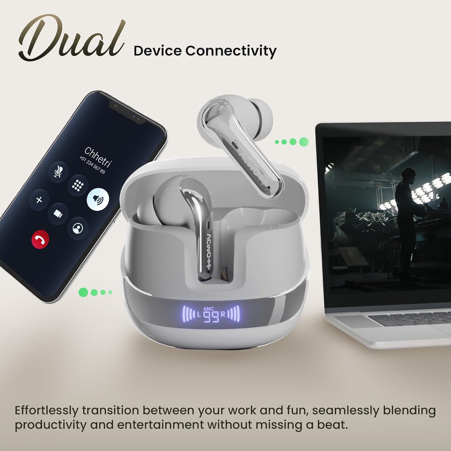 ACwO DwOTS 747 TWS Earbuds | Dual Device Connectivity | ANC 32dB | 4 AI-ENC Mics | 65H Playback | Bass & Theatre Modes | 3D Spatial Audio | Bluetooth 5.4 | (Silk White)