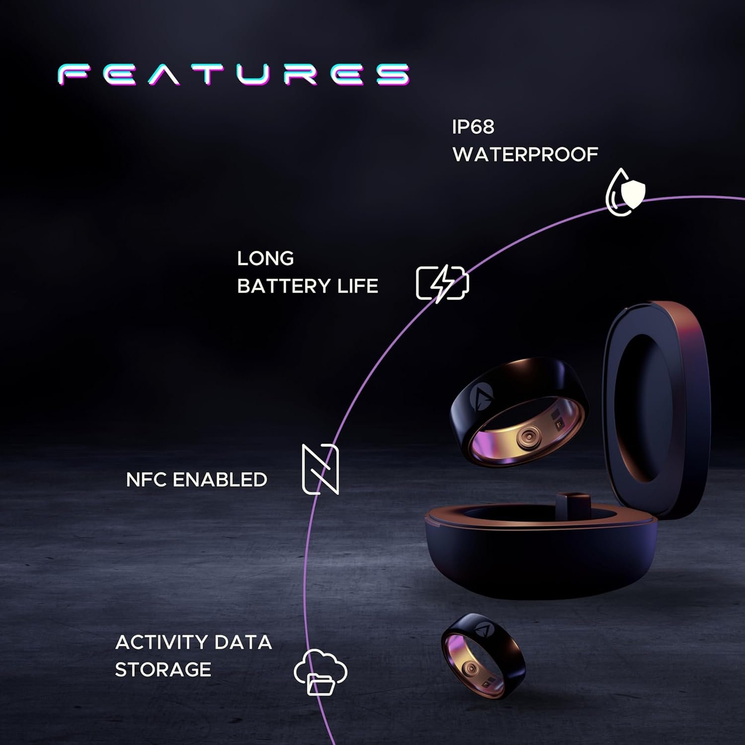 [𝐖𝐀𝐓𝐄𝐑𝐏𝐑𝐎𝐎𝐅 𝐃𝐄𝐒𝐈𝐆𝐍] : The smart health ring Its IP68 waterproof standard offers protection against water and dust, making it suitable for various indoor and outdoor activities, including swimming and outdoor adventures. Whether you’re washing your hands, caught in the rain, or engaging in water sports, this wearable ring tracker continues to function flawlessly. Its waterproof feature adds to the ring’s versatility, making it a perfect companion for any lifestyle.