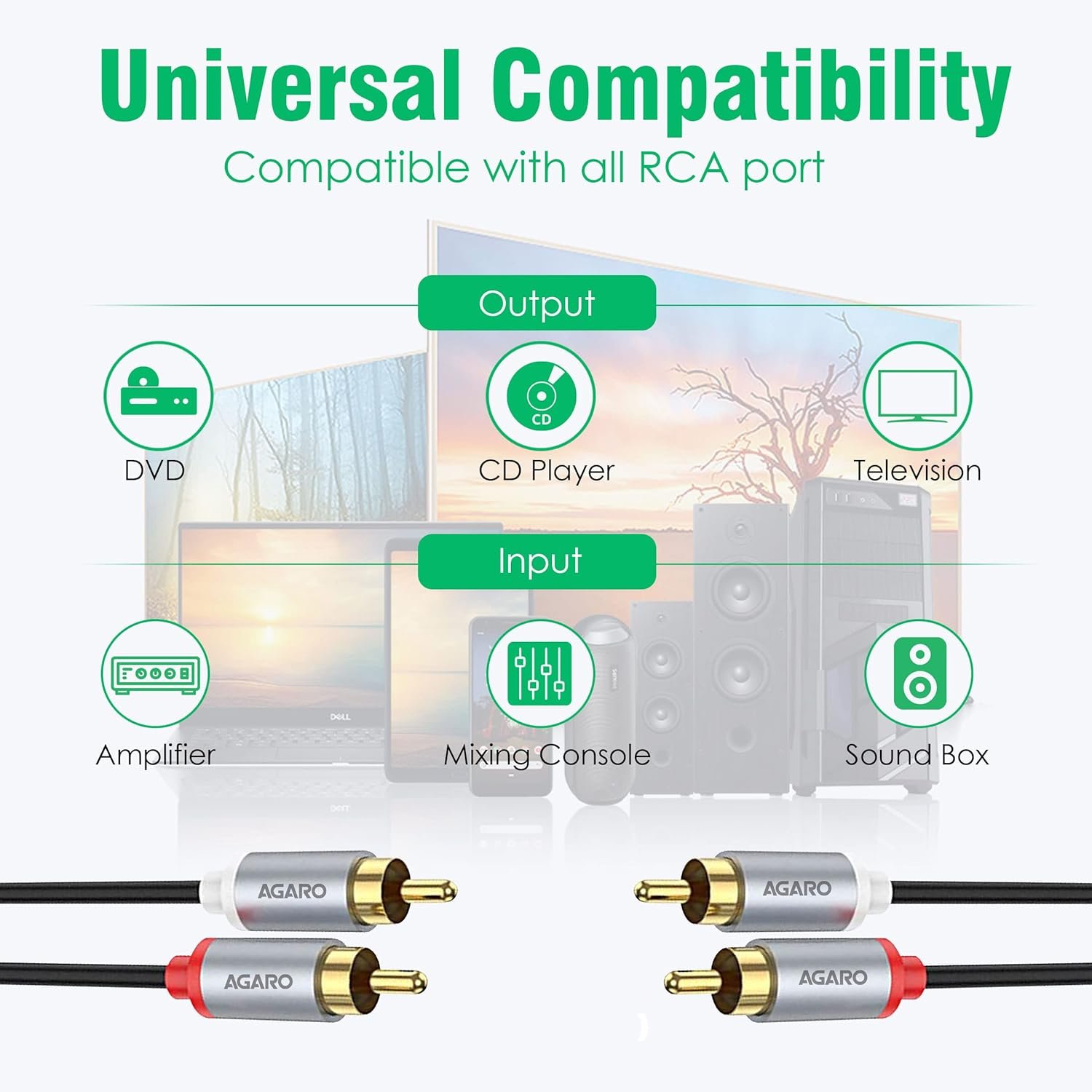 RCA audio cable supports all devices with RCA audio connections, such as A/V receiver audio equipment, DJ controllers, home theater systems, hi-fi amplifiers, DVDs, phono preamps , game consoles, high-definition TVs, etc. Transmit high-quality L/R audio signals