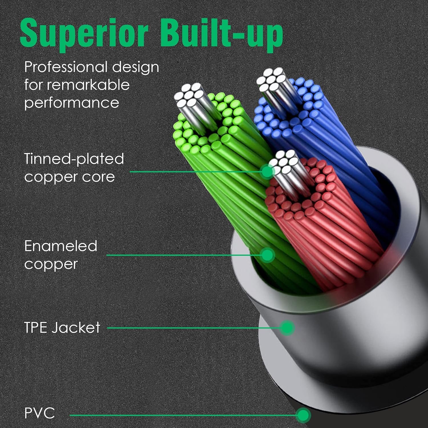 Heavy-duty, thick-shielded, high-quality RCA connectors suppress internal noise, boost bass, and eliminate strand interaction distortion, reducing signal loss. Soft PVC jacket for durability. Bringing you the rich, clear music, dialogue and sound you deserve. You deserve to have