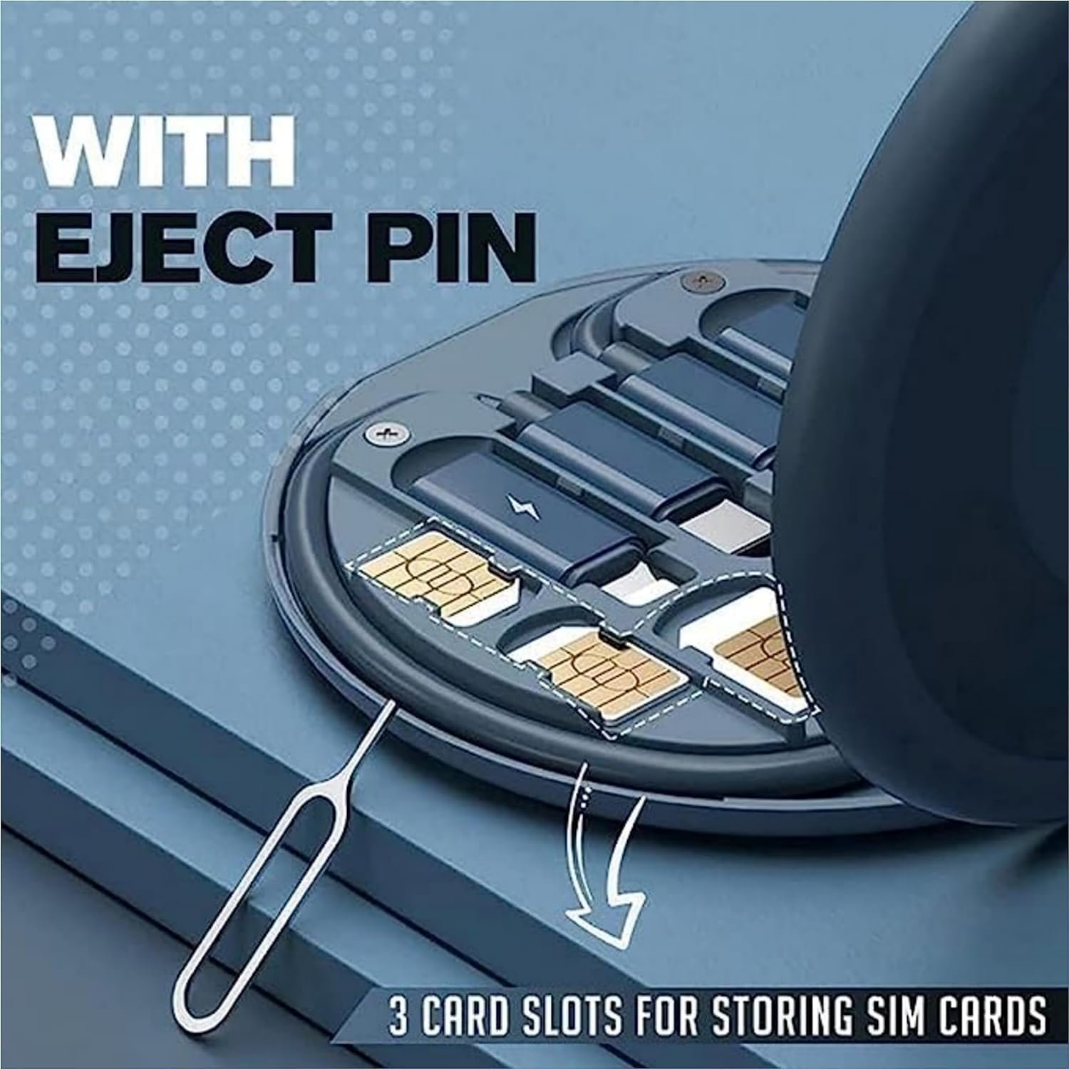 Box Contains: 1x Type C to Type C Cable, 1x Type C to USB A Connector, 1x Type C to Lightening Connector,1x Type C to Micro USB Connector, 1x Sim Ejector Pin, Round Case can also be used as mobile stand/holder, It also has 2 Storage Space for Nano Sim Card & 1 Storage Space for Micro Sim Card & 1Months Warranty. Please Note : (SIM card is not included).