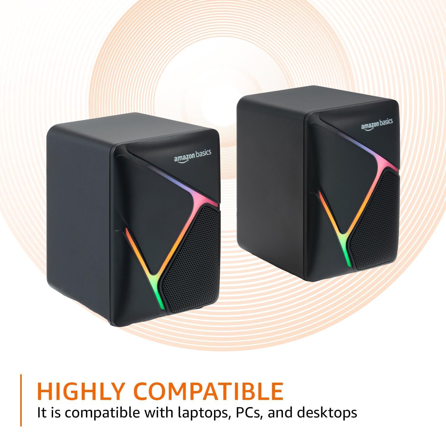 Amazon Basics YM115 USB powered 2.0 modern design wired speaker best fit for your gaming experience as it comes RGB lights