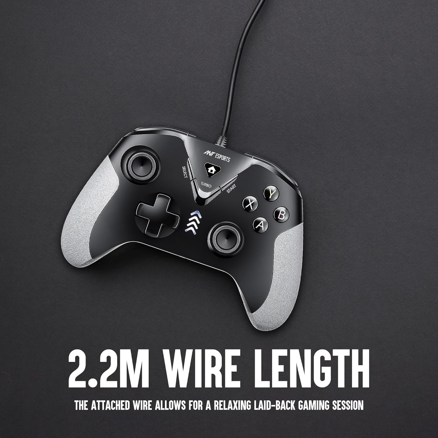 2.2 meter long wire allows for a laid back, relaxing gaming experience.
