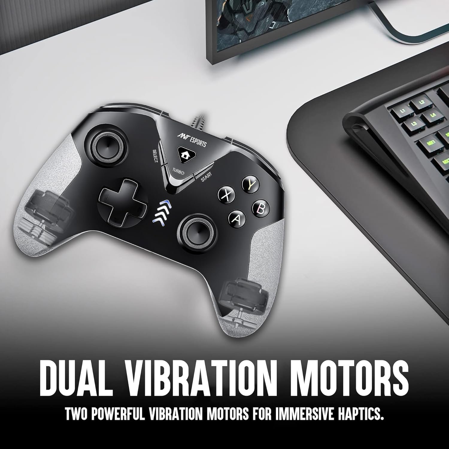 Dual Vibration Motors on both grips for an immersive haptics experience.