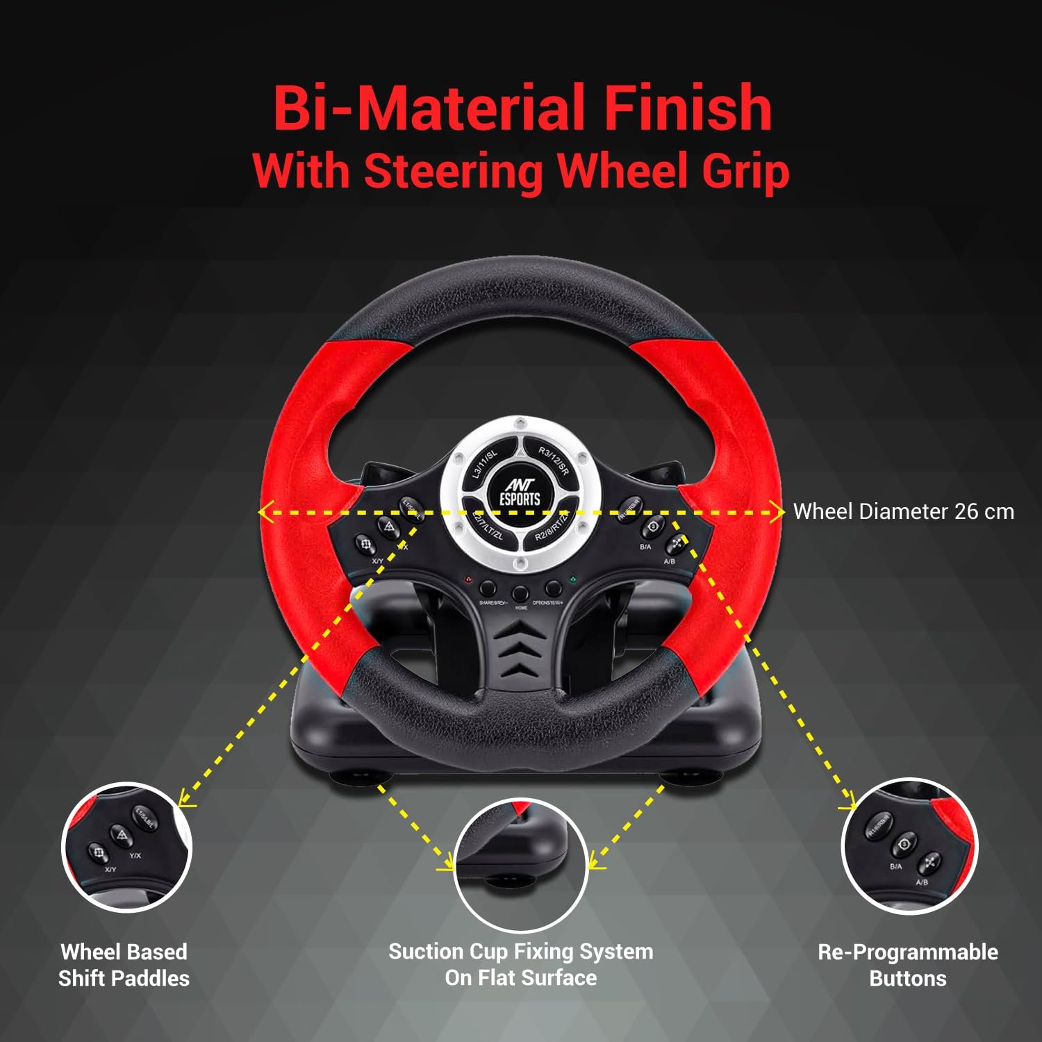 Ant Esports GW170 Competition Racing Steering Wheel with Universal USB Port and with Pedal, Suitable for PC, PS3, PS4, Xbox One, Xbox Series S&X, Nintendo Switch and Android TV – Red Black