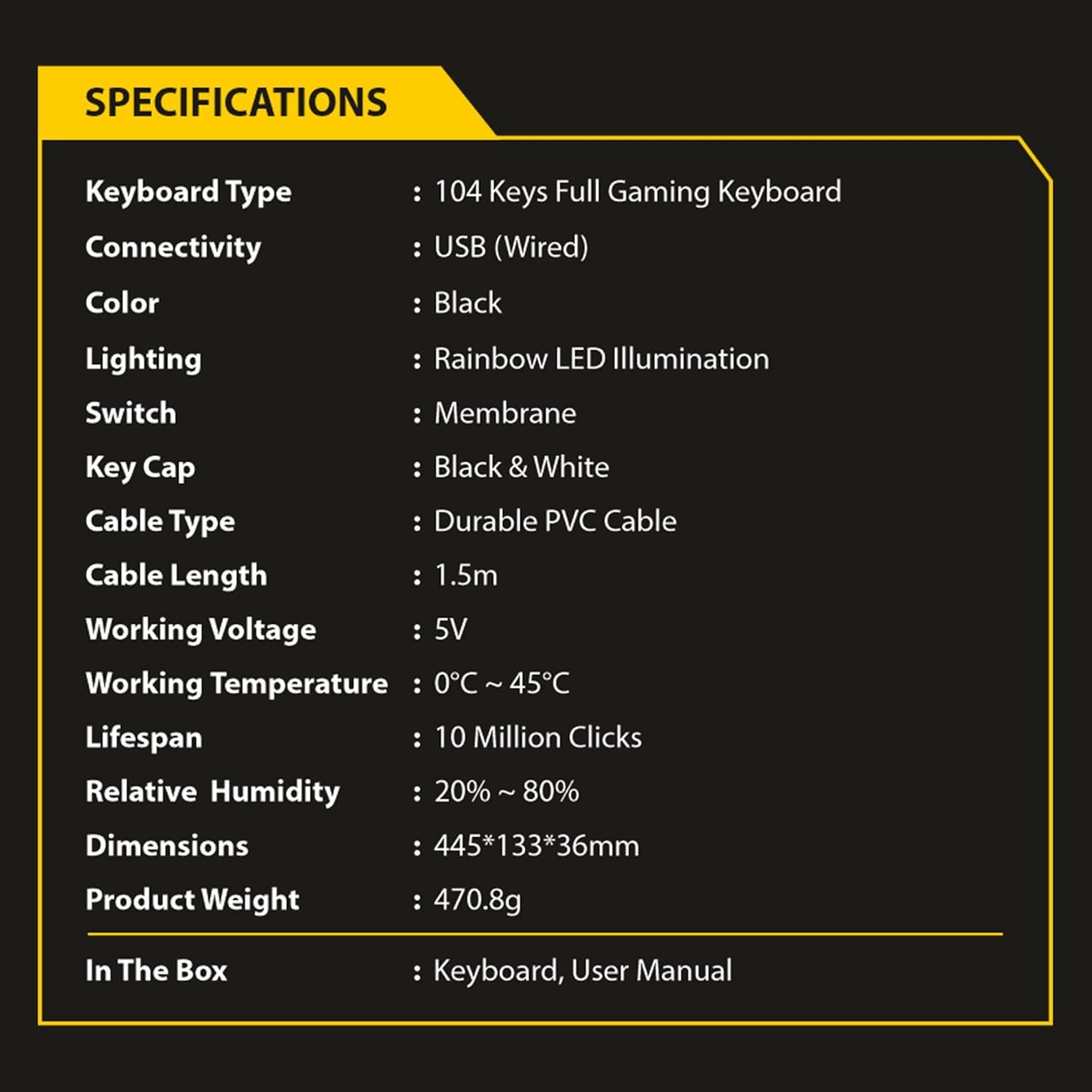 · Ant Esports MK1400 Pro Backlit Gaming Keyboard Comes with Stylish 104 keys. Its durable quality & Elegant black & white key cap design enhances your gaming & work experience.