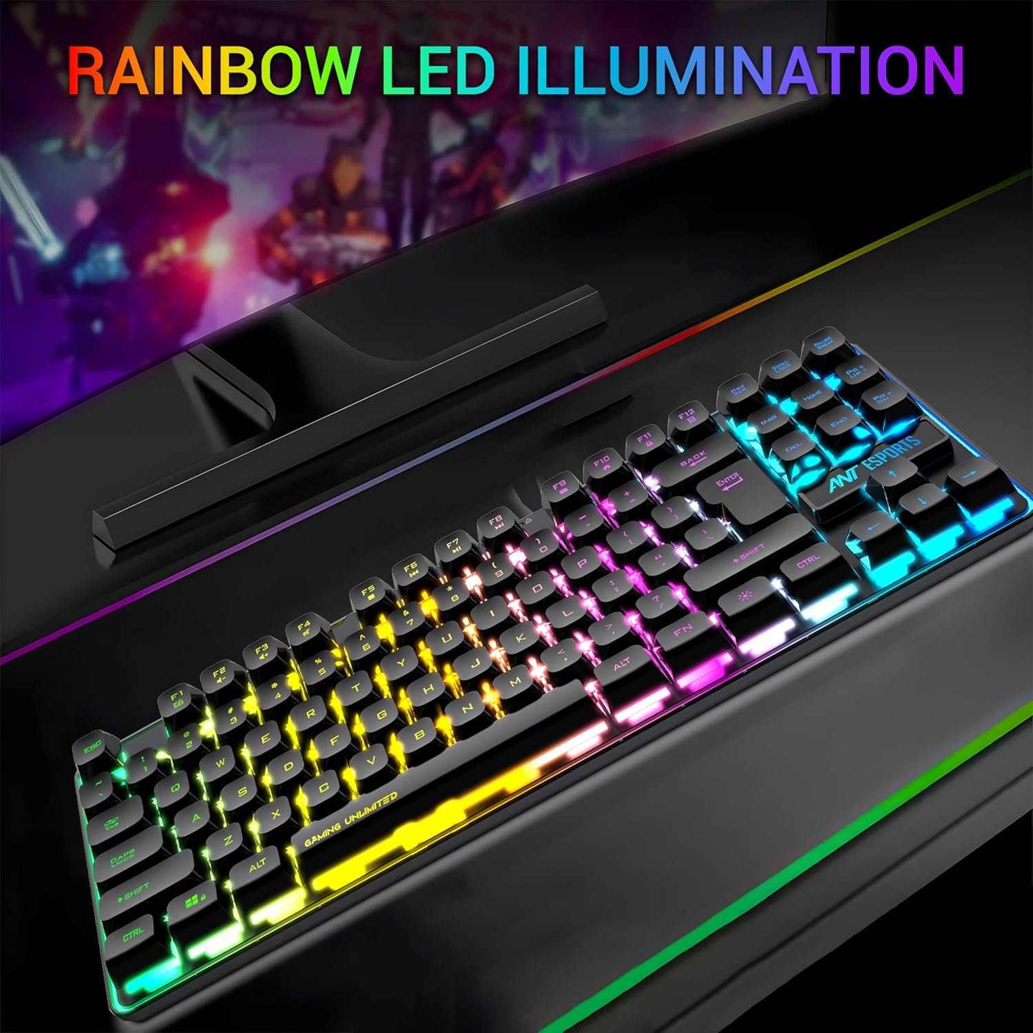 Ant Esports MK720 Pro V2 Wireless TKL RGB Gaming Membrane Keyboard, Backlit Wireless – Long Lasting Rechargeable Battery – Quite Water-Resistant Ergonomics Keyboard – PC PS5 PS4 Xbox One Mac – Black