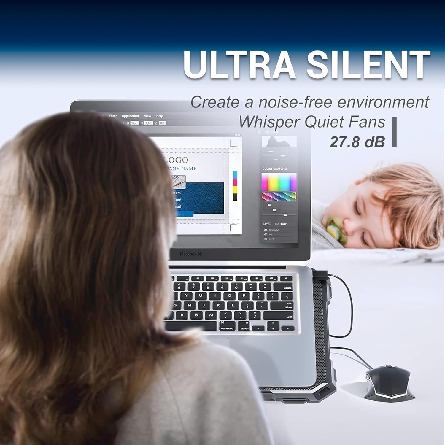 Universal Compatibility-The light and portable laptop cooling pad works with most laptops up to 17 inches. Meet your needs when using a laptop home or office for work.