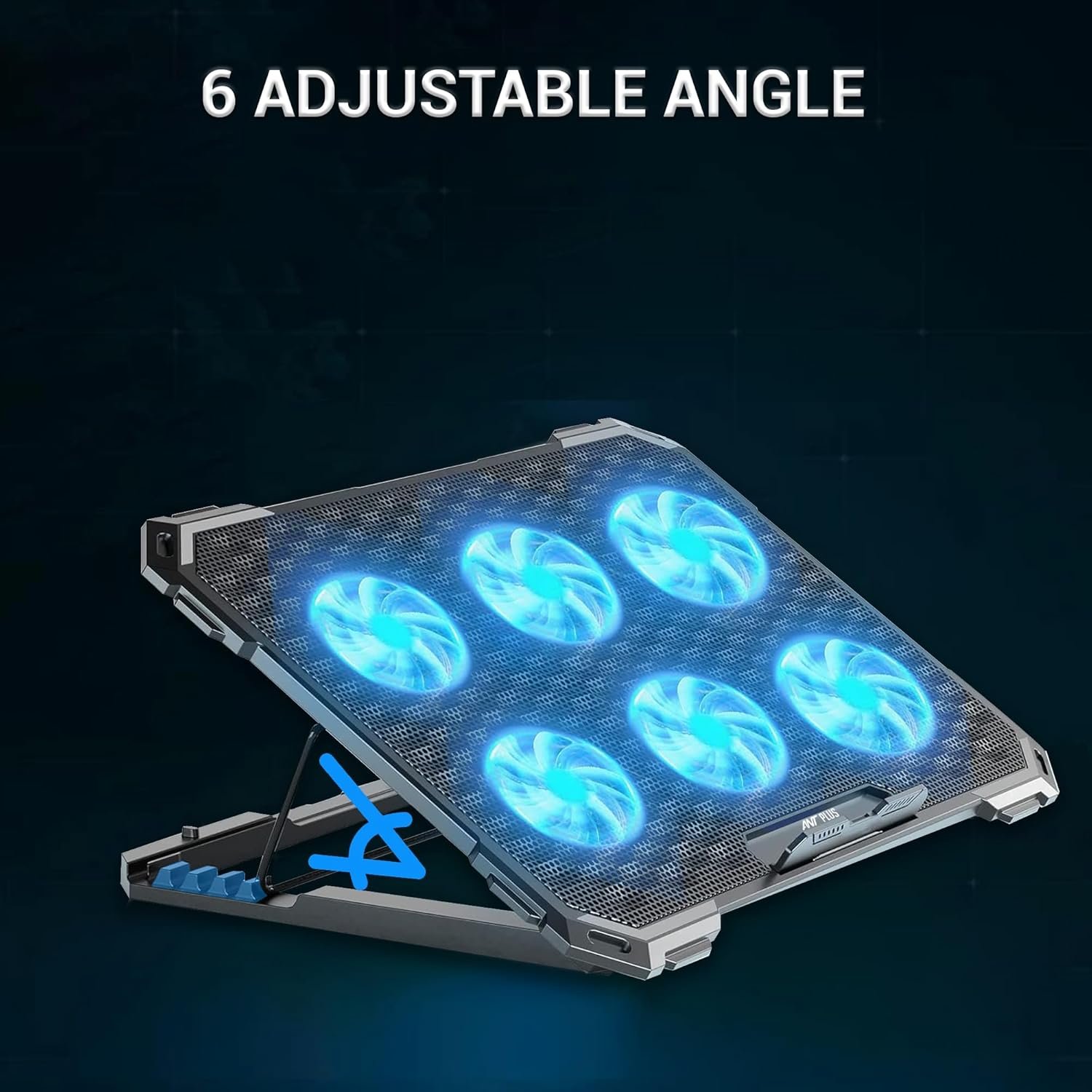 Adjust Fan Speed & Cooling Pad Height- Dedicated Rotate switch control 6 fans speed from 0 to max freely. You can choose the most comfortable angle or height from the 5 adjustable modes, never using the computer for a long time will not cause physical discomfort