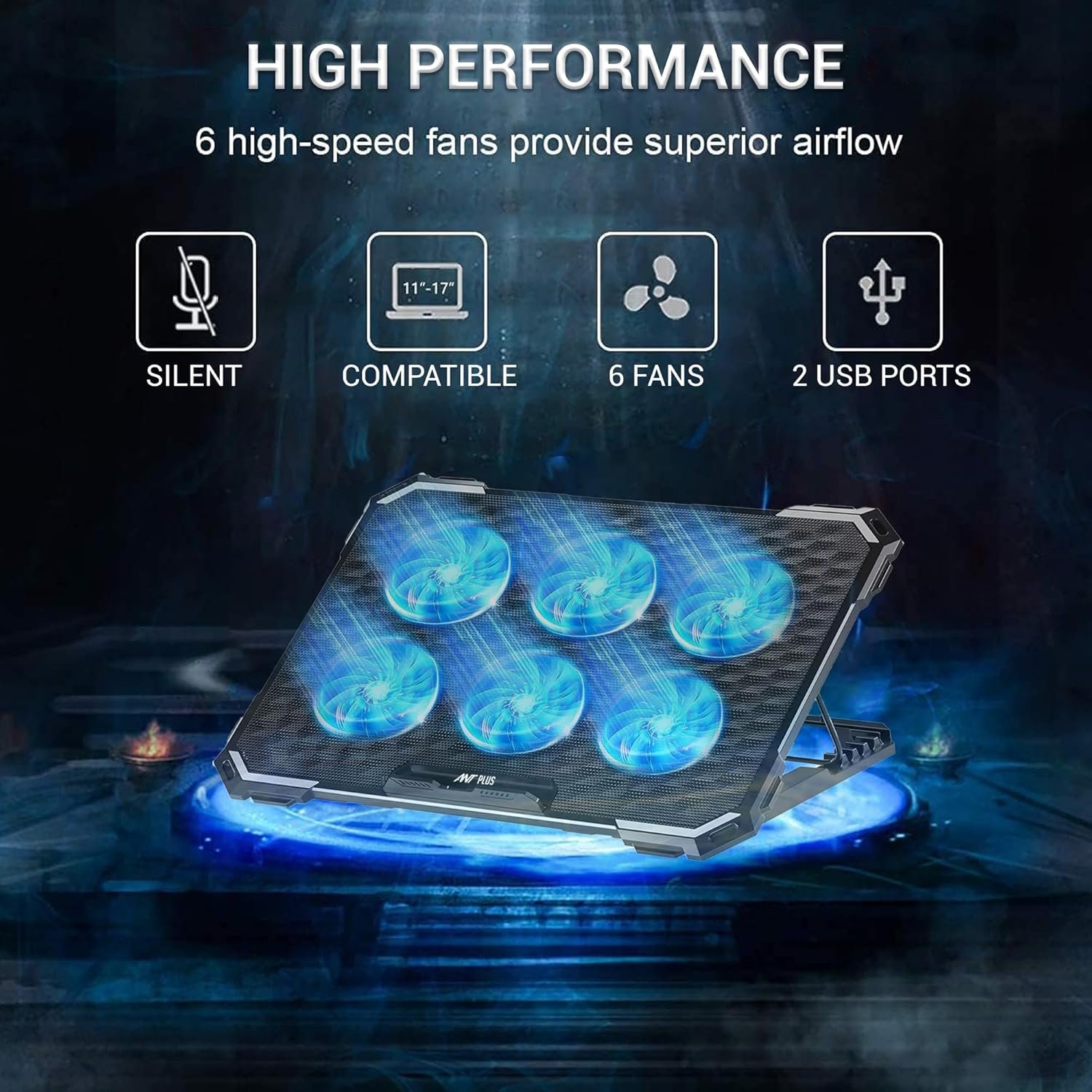 6 Super Cooling & Quiet Fans-This laptop cooling pad with 6 quiet cooling fans, which can quickly cool down your laptop and keep your laptop running efficiently while playing games, while keeping the built-in cooling fan is quiet, Excellent mute experience