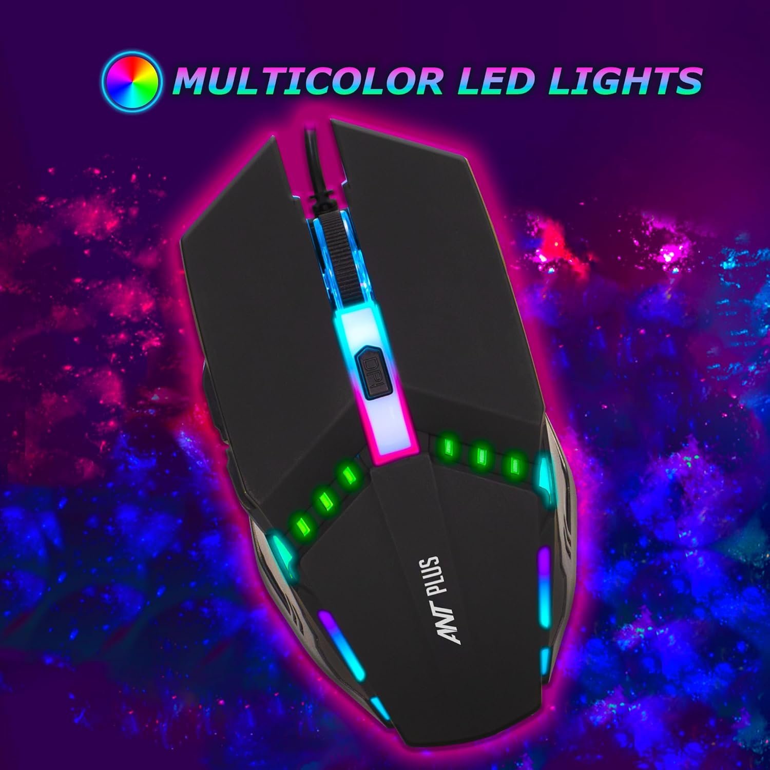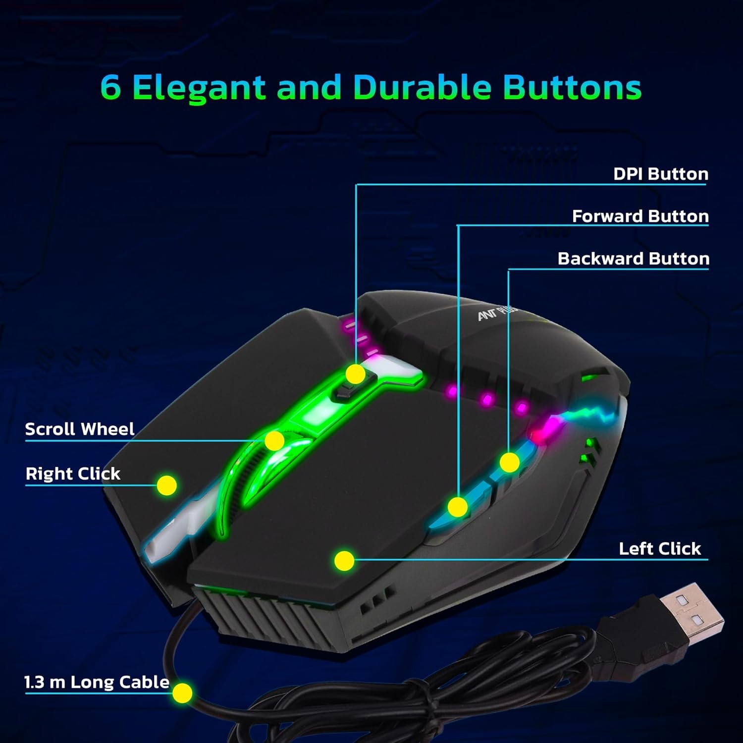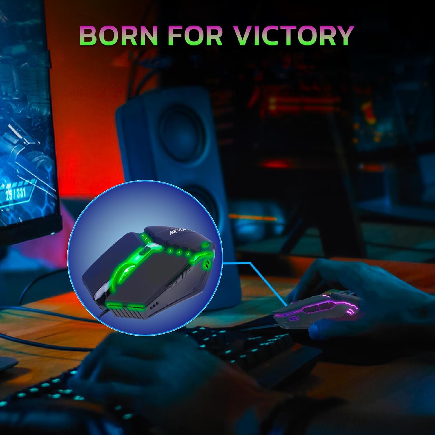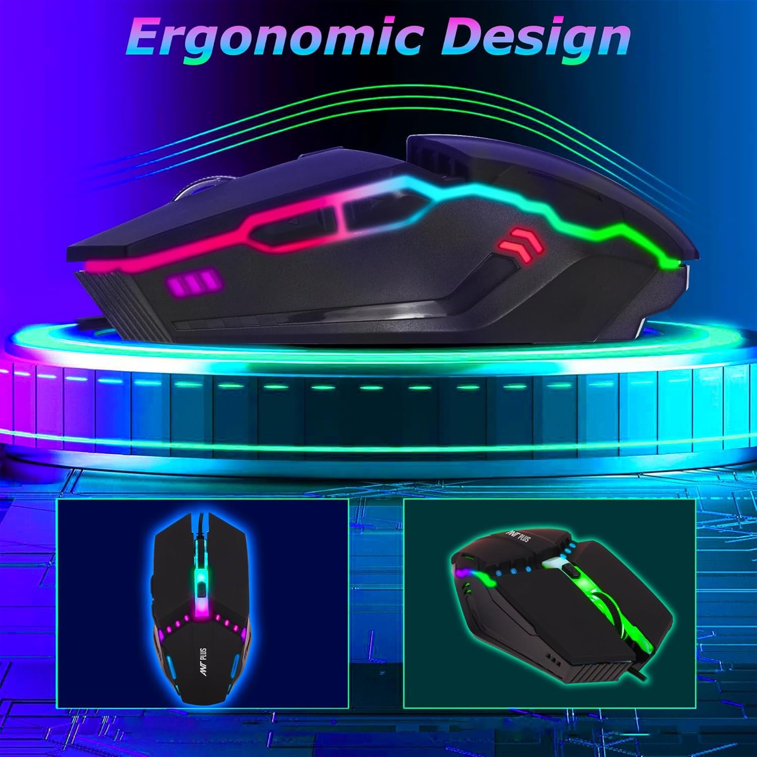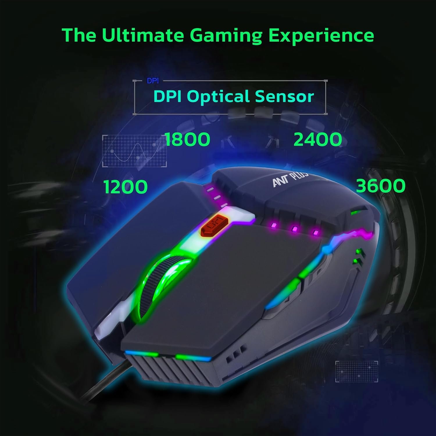Ant Plus Ghost 20 Gaming Mouse Wired, Ergonomic Gamer Laptop PC USB Optical Computer Mice with RGB Backlit, 4 Adjustable DPI Up to 3600, 6 Programmable Buttons for Windows 7/8/10/XP Vista Linux -Black