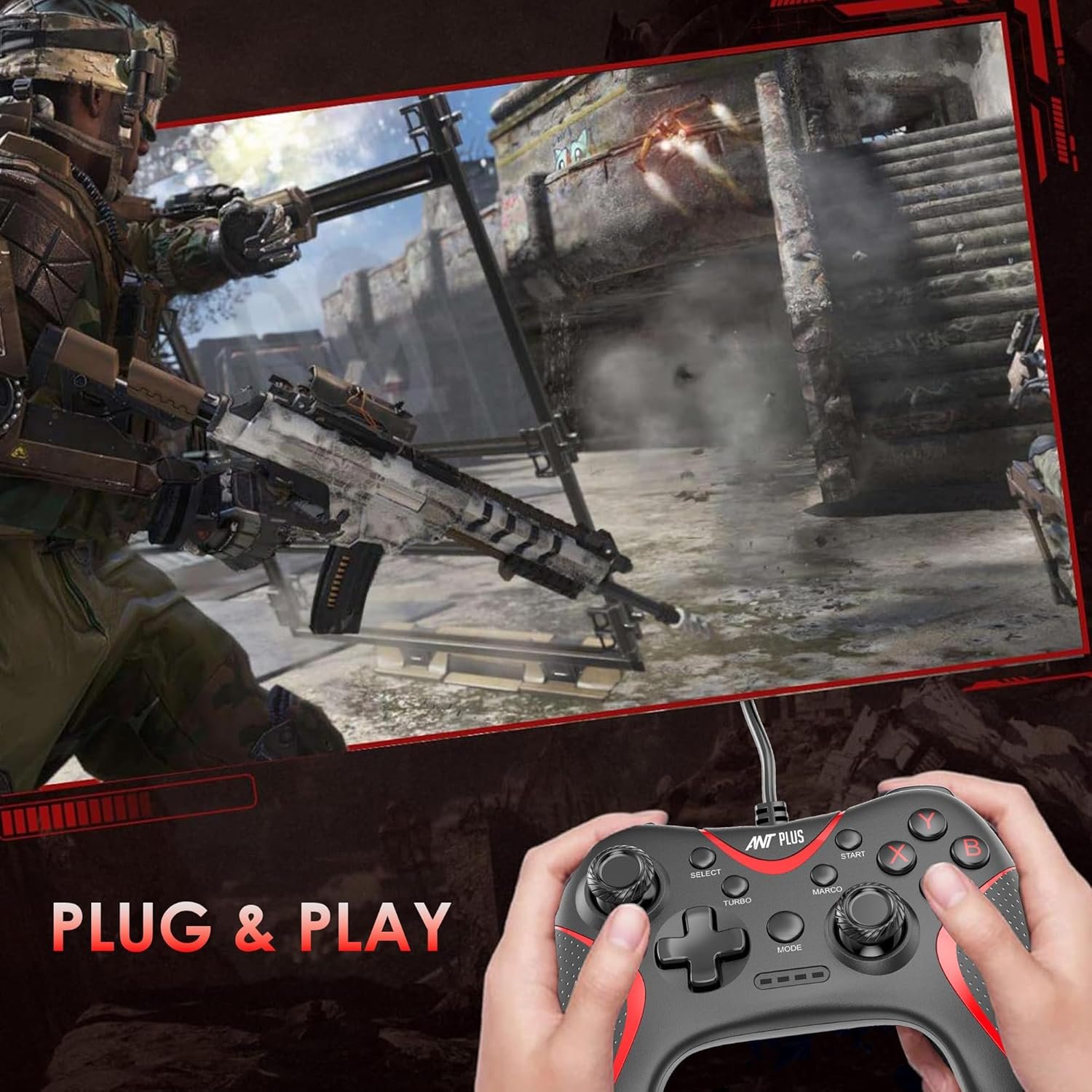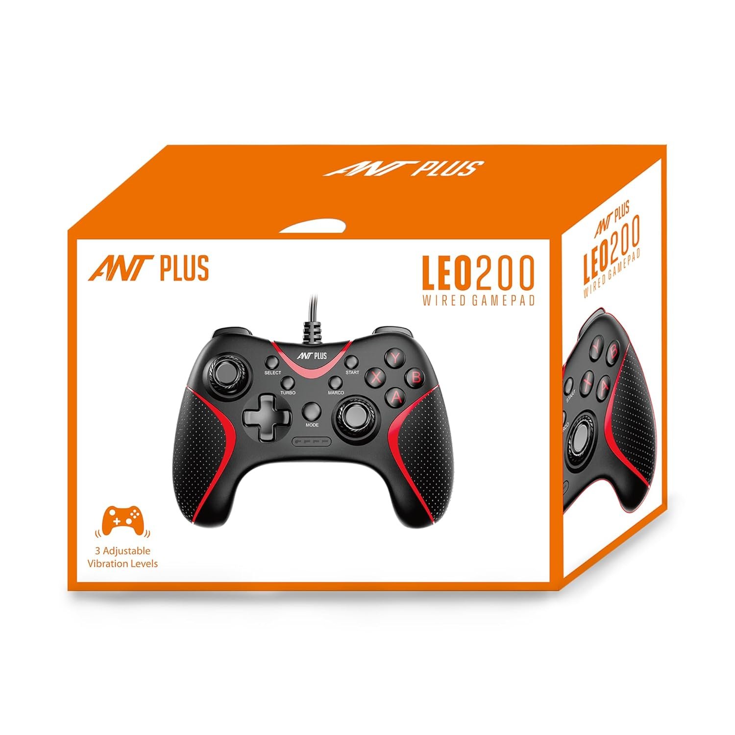 Ant Plus Leo 200 Wired Gamepad with Integrated Force Feedback, ABXY Keys, Ergonomically Design, 1.8m USB Cable for PC