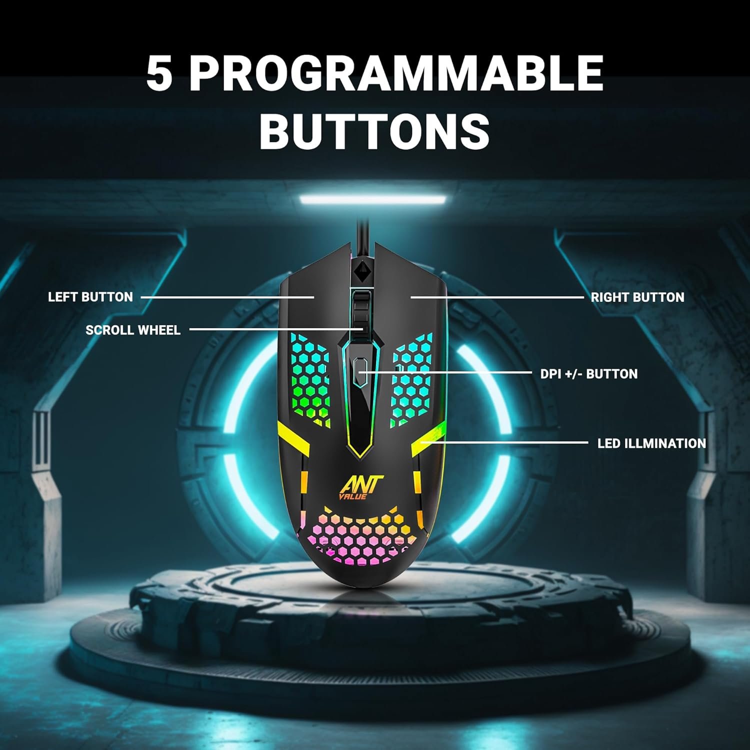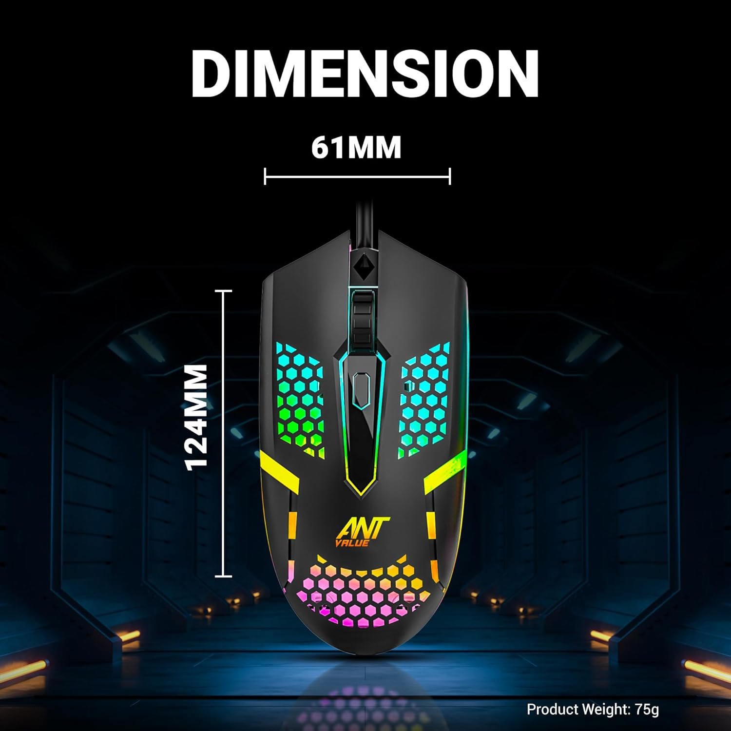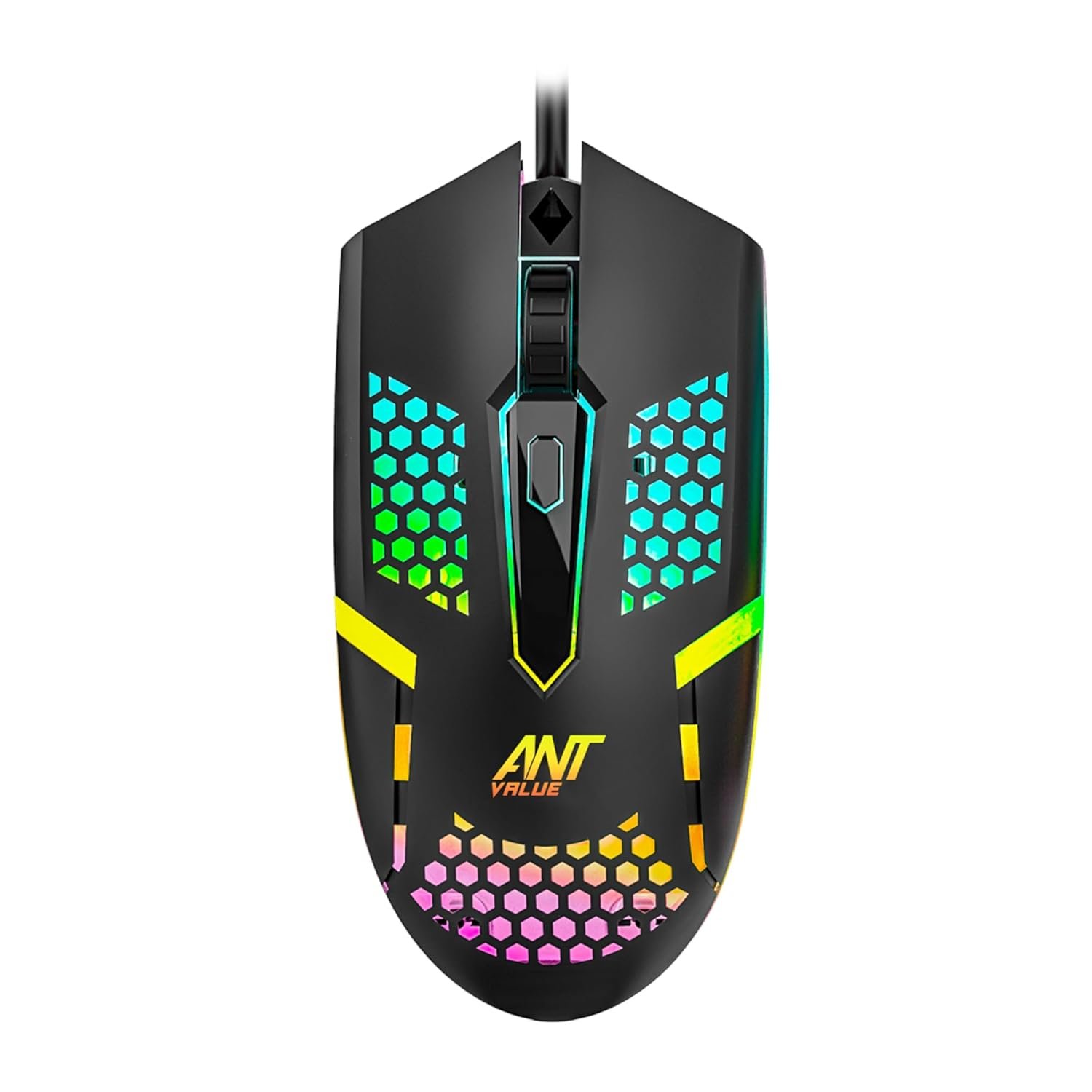 Ant Value GM1103 Gaming Mouse, USB Optical Computer Mice with RGB Backlit, 4 Adjustable DPI Up to 3600, Ergonomic Gamer Laptop PC Mouse for Windows 7/8/10/XP Vista Linux -Black