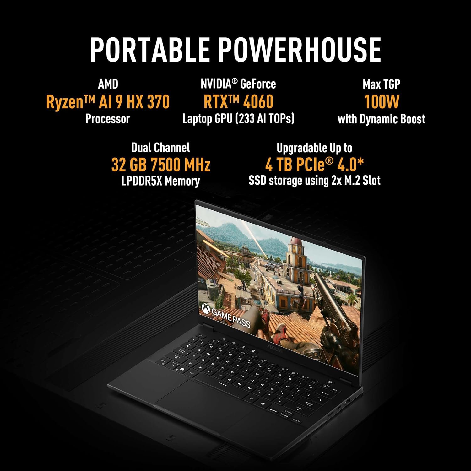 AI Enabled Processor : AMD Ryzen AI 9 HX 370 Processor 2.0GHz (36MB Cache, up to 5.1GHz, 12 cores, 24 Threads) AMD XDNA NPU up to 50TOPS Designed for smooth gameplay