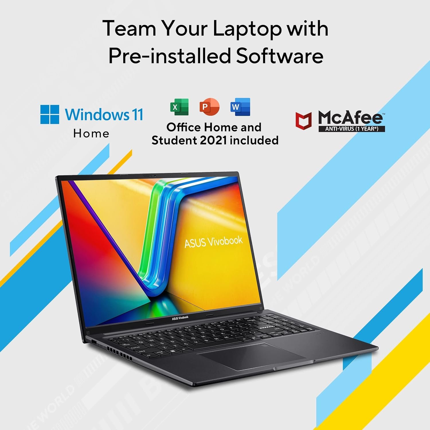 Operating System: Windows 11 Home with lifetime validity | Software Included: Pre-Installed Office Home and Student 2021 | 1-Year McAfee Anti-Virus