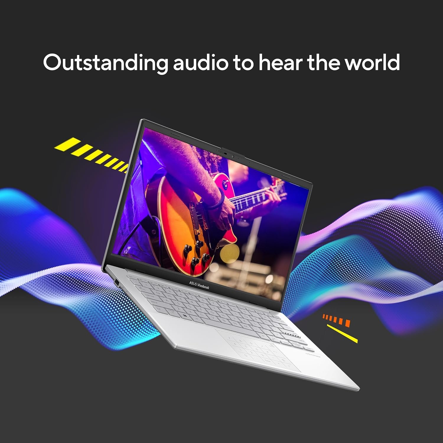 Vivobook Go 14 has beautifully clear visuals with its NanoEdge slim-bezel display that provides more screen space for multitasking and immersive viewing.