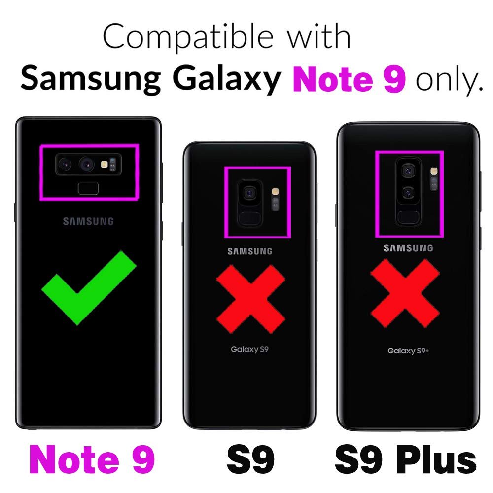【Compatible Models】: Compatible with Samsung Galaxy Note 9, NOT compatible with S9 or other devices.【Package Includes】: We will send the phone case with 1 piece tempered glass screen protector.