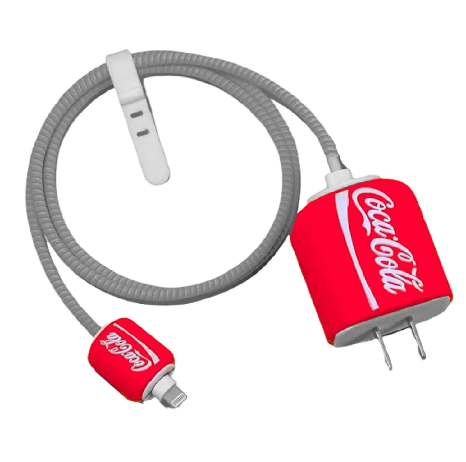 AUGEN Cartoon 3D Design Protective Case for 20W iPhone USB-C Power Adapter Charger, Cute Cartoon Lightning Data Cable Case for iPhone Charger (Coke, Pack of 1)