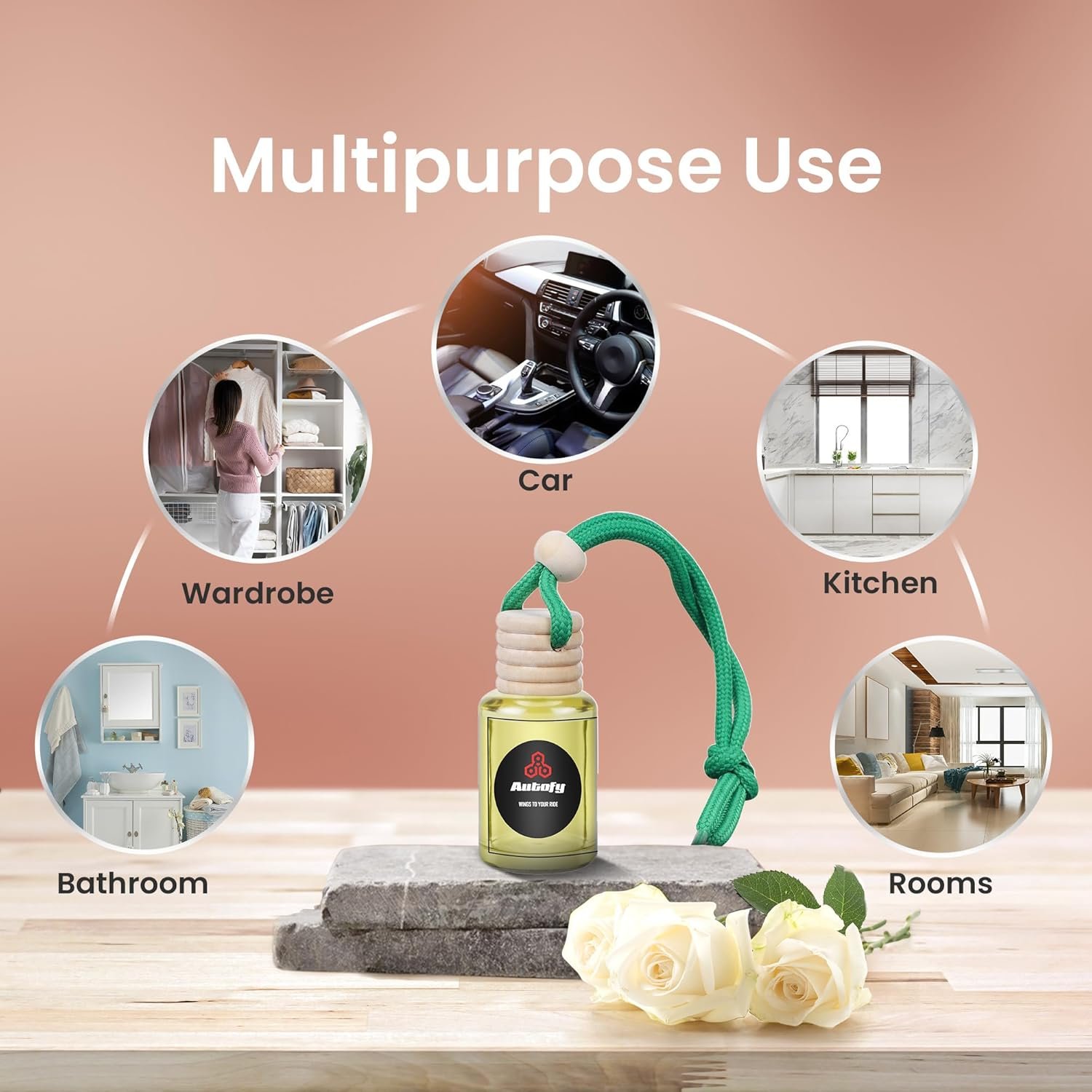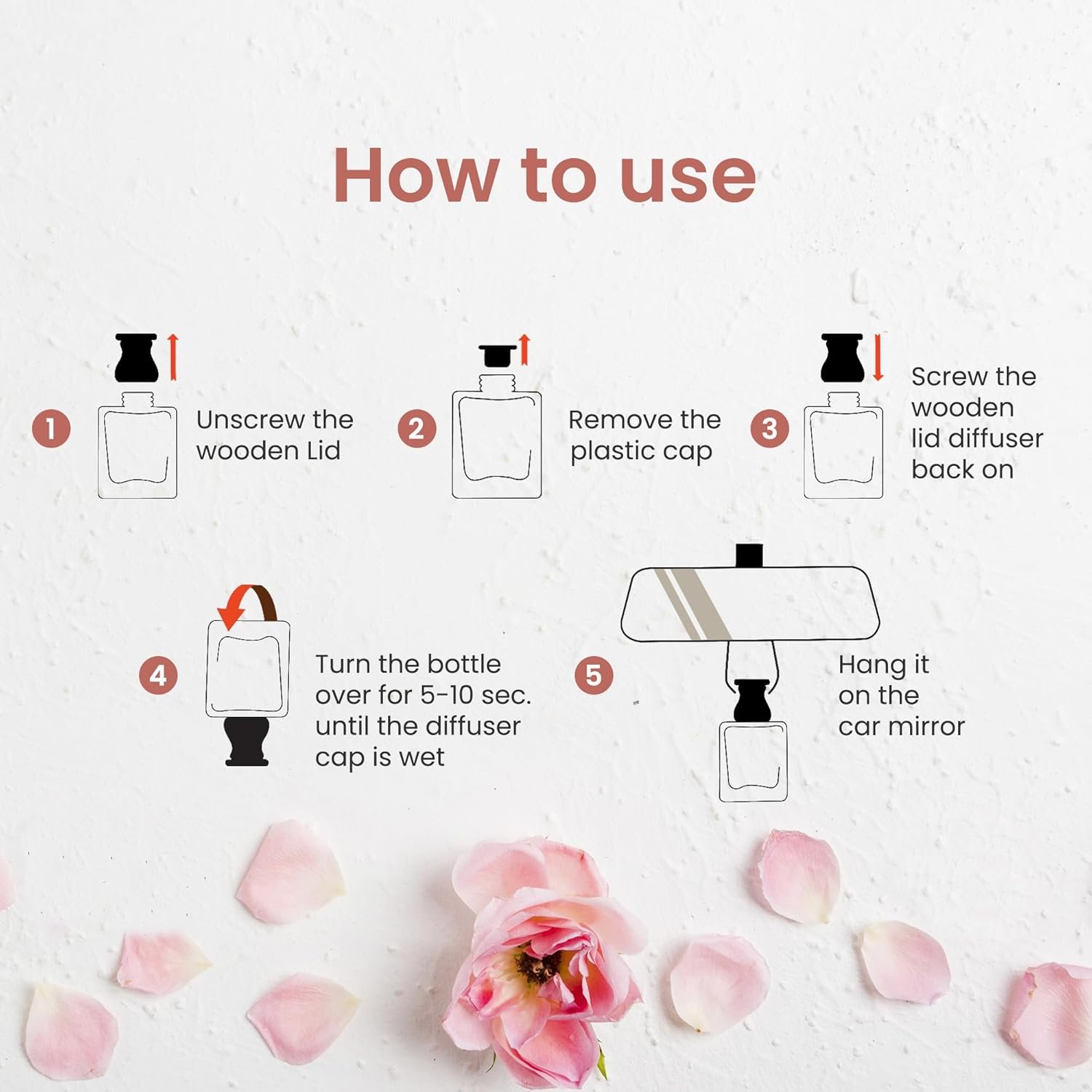 [HOW TO USE & WHAT NOT TO DO] – <1> Unscrew the wooden diffuser cap. <2> Remove the plastic stopper. <3> Screw back wooden diffuser cap. <4> Invert the bottle for 10 seconds & hang inside rear view mirror. Repeat step 4 after 7-10 days. MAKE SURE TO – tie the thread TIGHT & SMALL IN LENGTH to prevent collision with windshield on rough roads.
